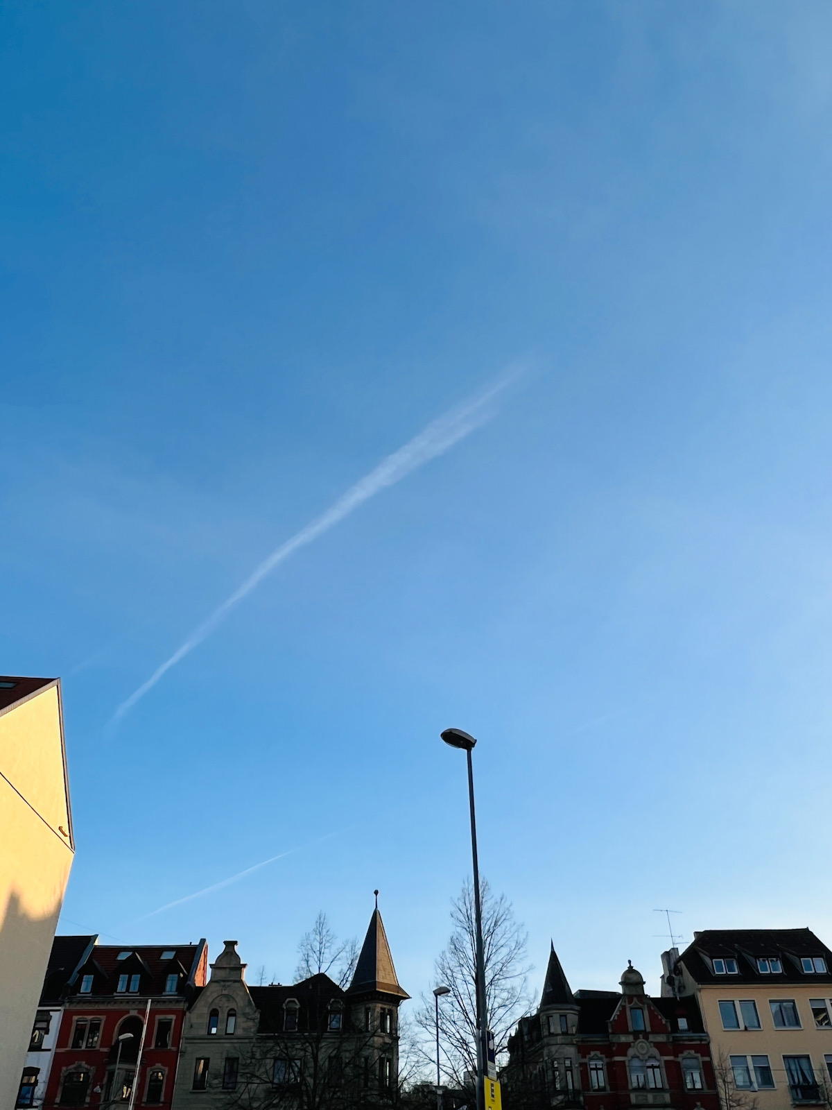 青空と白い雲が美しいです。影はザールラント州立劇場のもの。
