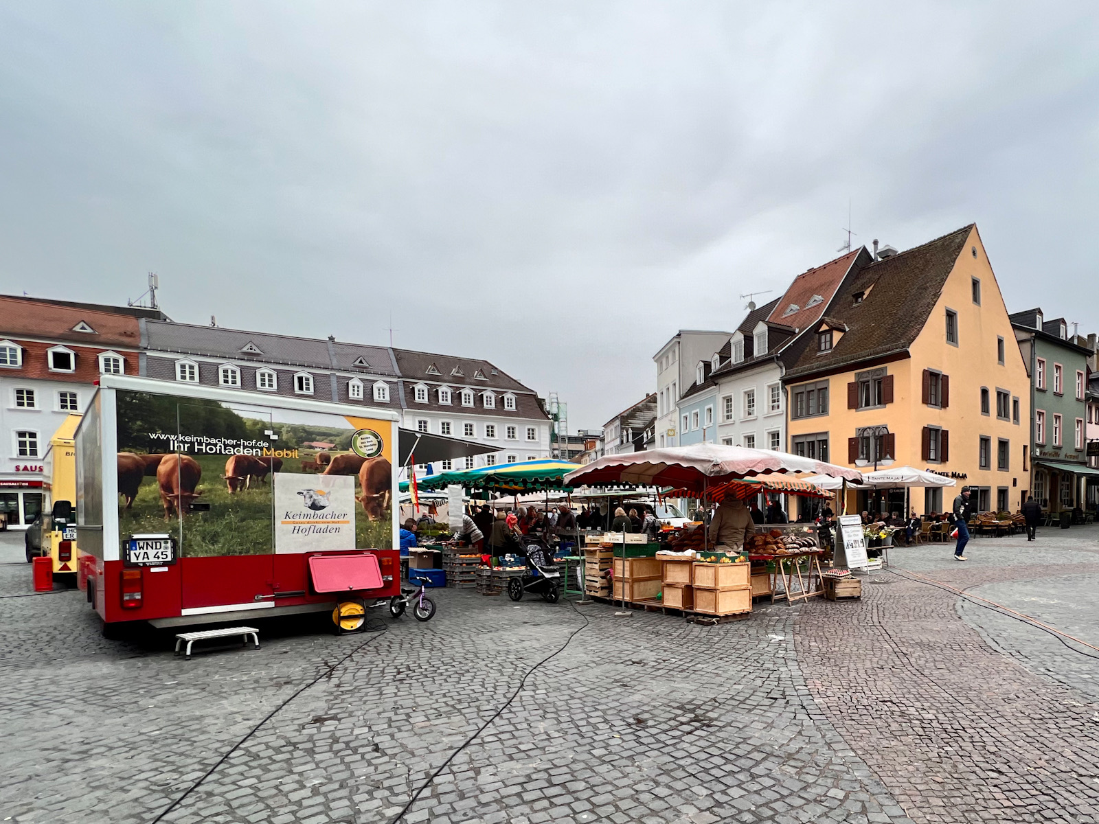 街の中心の広場で開かれている朝市です。